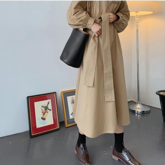 ワンピース きれいめ上品なベージュの可愛いカッコいいシャツワンピ 韓国 ワンピース ドレス 通販レディースmarron マロン